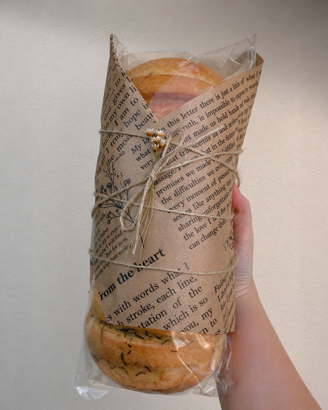 Formato baguete ou caseiro. Regado com azeite de oliva e finalizado com alecrim e ervas finas.
